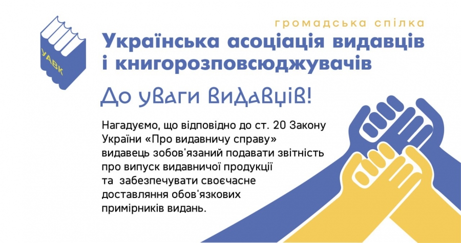 Нагадуємо, що відповідно до ст. 20 Закону України «Про видавничу справу» видавець зобов’язаний, серед іншого, забезпечувати своєчасне доставляння обов’язкових примірників видань.